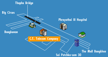C.T. Telecom Co., Ltd. (OFFICE) C.T. Tower 170/19 Soi Phetkasaem 30, Phetksame rd., Parkklong Phasricharoen, Bangkok 10160 THAILAND. Tel, Fax : (662) 457-5280, 868-5594-5