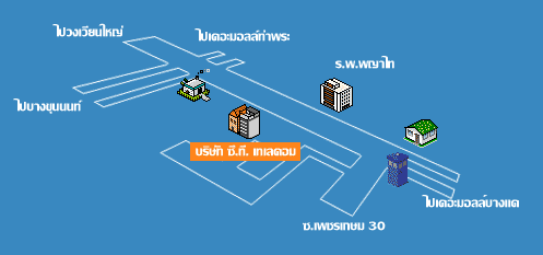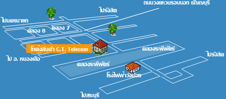 บริษัท ซี.ที. เทเลคอม จำกัด (สำนักงาน) อาคาร ซี.ที. ทาวเวอร์ เลขที่ 170/19 ซอย เพชรเกษม 30 ถนน เพชรเกษม แขวง ปากคลองภาษีเจริญ เขต ภาษีเจริญ กรุงเทพฯ 10160 โทรศัพท์และโทรสาร (02) 457-5280, 868-5594-5